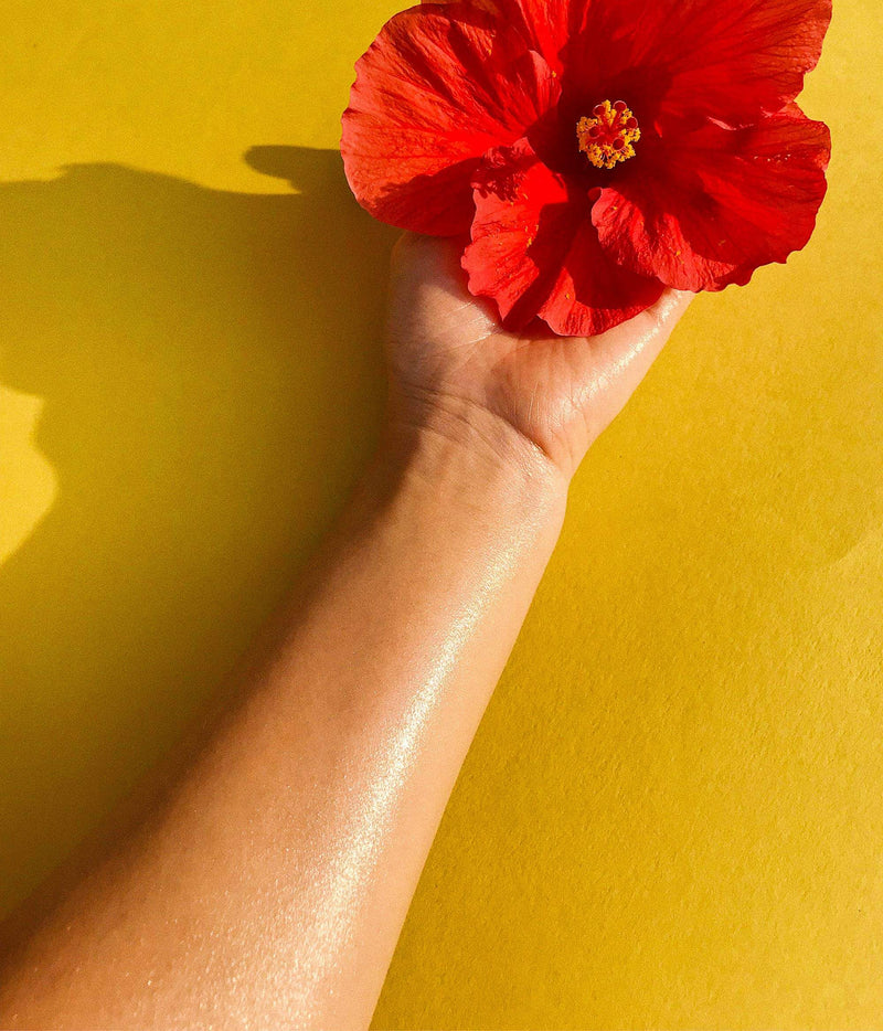 This shimmering body oil contains golden iridescent mineral particles creating silky-smooth highlights and an illuminating glow. Made from a blend of monoï, kukui and cherry seed oil that highly nourishes and repairs dry flaky skin and provides a high source of antioxidants to help shield against pollution.
